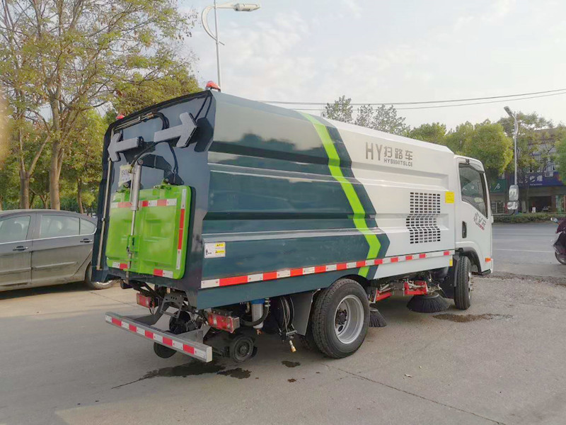 8、驾驶室手动按钮式液压系统驱动左右立扫升降、左右扫盘旋转、吸嘴升降、垃圾箱后门开闭、垃圾箱倾翻复位等机械动作。
