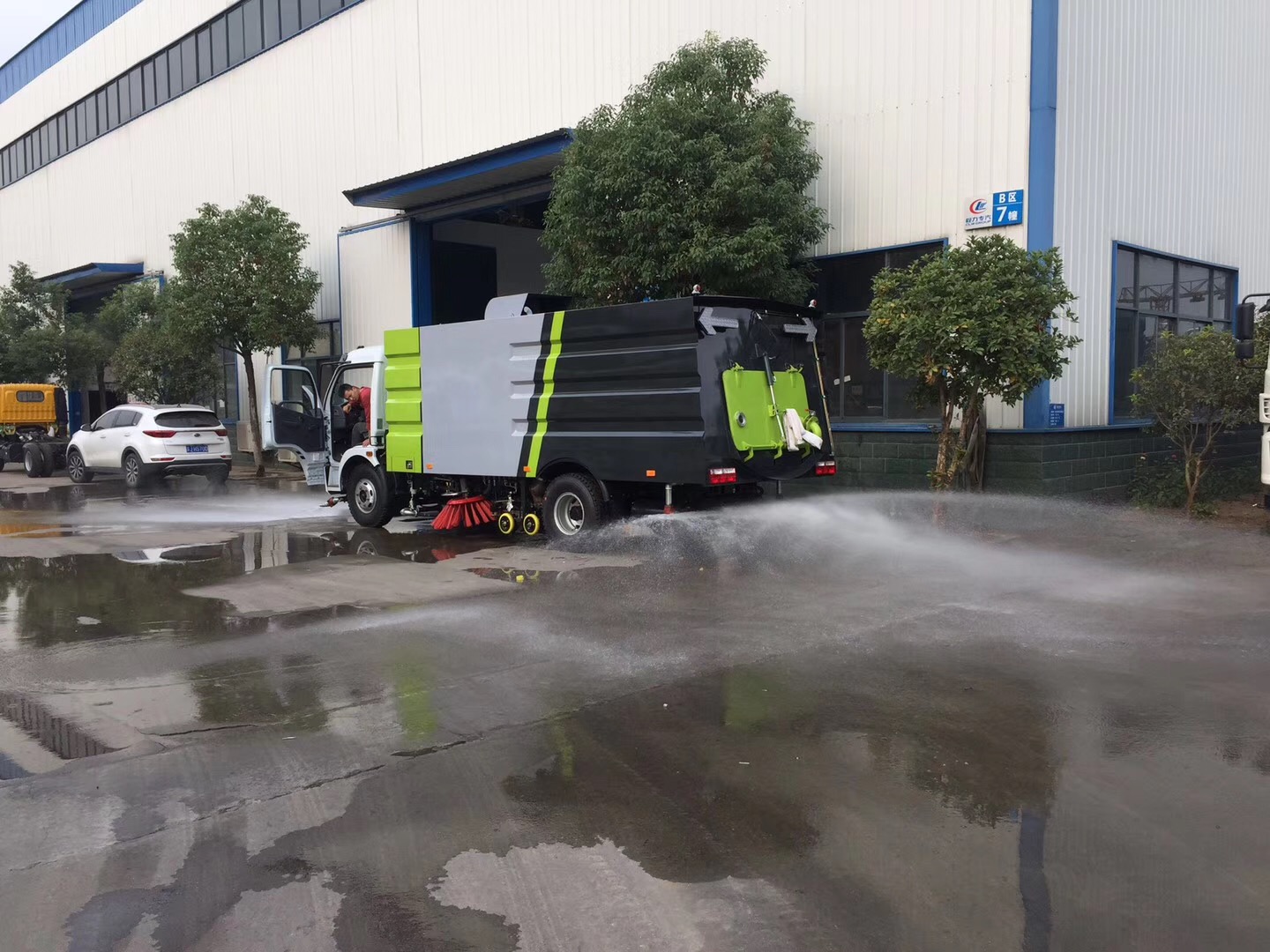 1、左右立扫为双扫盘,扫刷上加装喷水装置,用于喷雾降尘。左右立扫分开,可实现右扫和全扫等不同的作业模式。