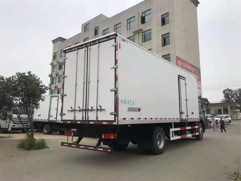 康明斯220马力,法士特8档,轴距:5750mm,原厂空调、液翻压转、动转、断气刹、ABS、中控锁锁+电车动窗+遥控、刹车自调臂、可大调灯、倒雷车达,气座囊椅。厢体采用内外璃玻钢、中间8cm厚高密保度温板、底为板防滑花铝纹板,不钢锈门锁件,其标余配
