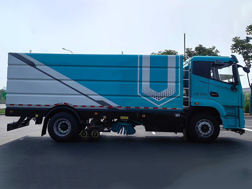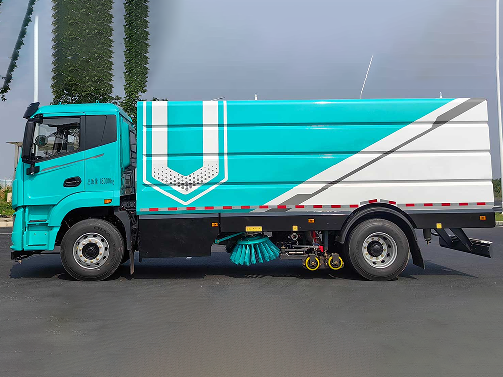 清扫:上装电机驱动液压油泵和风机工作。液压油泵驱动左、右扫盘伸缩、升降、旋转。左右扫盘将两侧的垃圾扫**洗扫车下面、吸嘴前方。风机工作使垃圾箱、吸管和吸嘴组成的风道产生高速气流,在气流的作用下,垃圾吸入吸嘴,并进入垃圾箱中。底盘发动机驱动洗扫车向前行走,扫**吸嘴前方的垃圾不断进入到吸嘴中,并源源不断地被吸到垃圾箱中,实现路面清扫。
