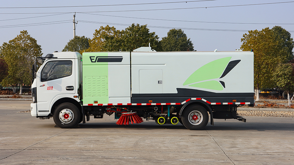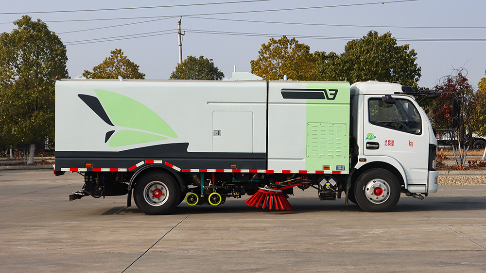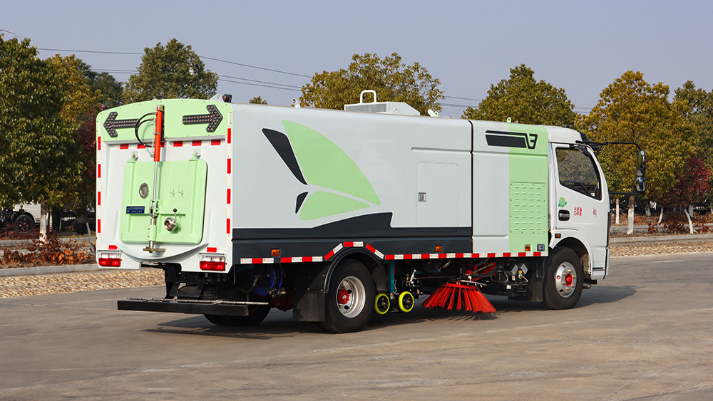 ● 该纯电动洗扫车是本公司为城市道路、机场、码头、广场、厂区等干道的清洁工作所开发的高效、 环保型洗扫车,具有清洗、洗扫、洒水、抑尘、扫吸结合转运一体化作业,一车多用的特点。