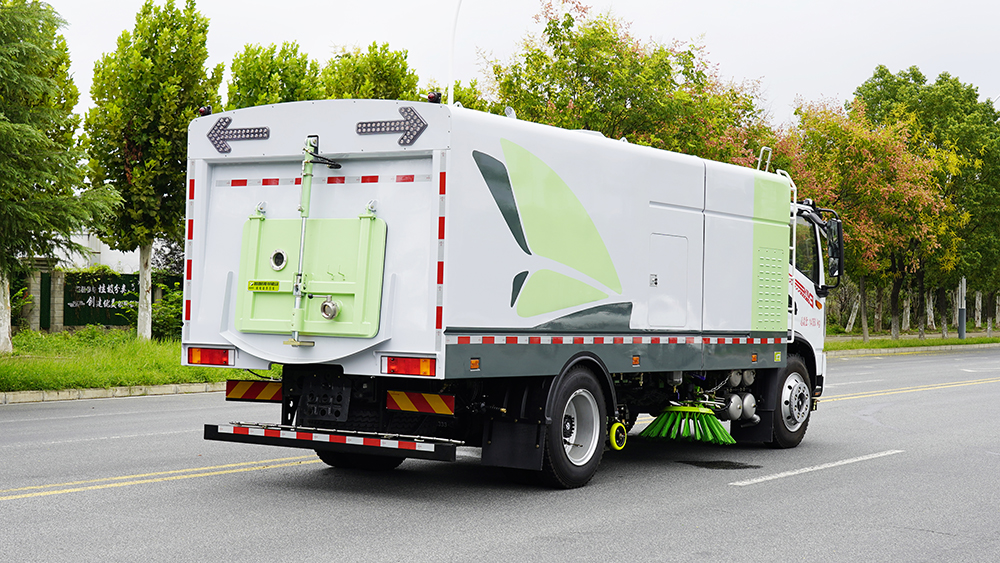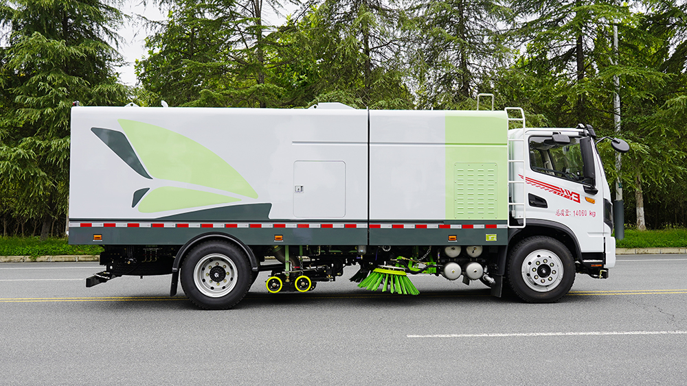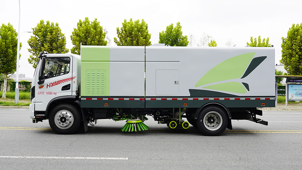 | ①作业模式:采用洗扫吸混合的方式收集垃圾,湿式除尘、电液**,液压倾翻卸料的作业方式对路面进行清扫作业。 | ||