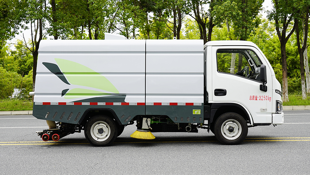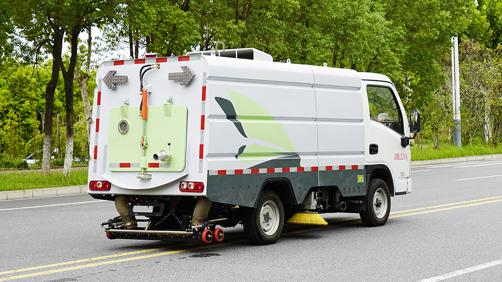 | ①作业模式:采用洗扫吸混合的方式收集垃圾,湿式除尘、电液**,液压倾翻卸料的作业方式对路面进行清扫作业。 | ||