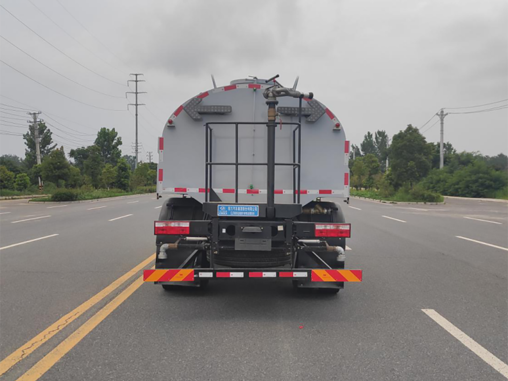 上装容积11立方,罐体采用Q235优质碳钢材质,Q235或铝合金后平台、Q235侧防护,60-90洒水水泵,全自动前冲、后洒、高炮,可在驾驶室一键操作洒水功能。高炮射程可达35米以上。