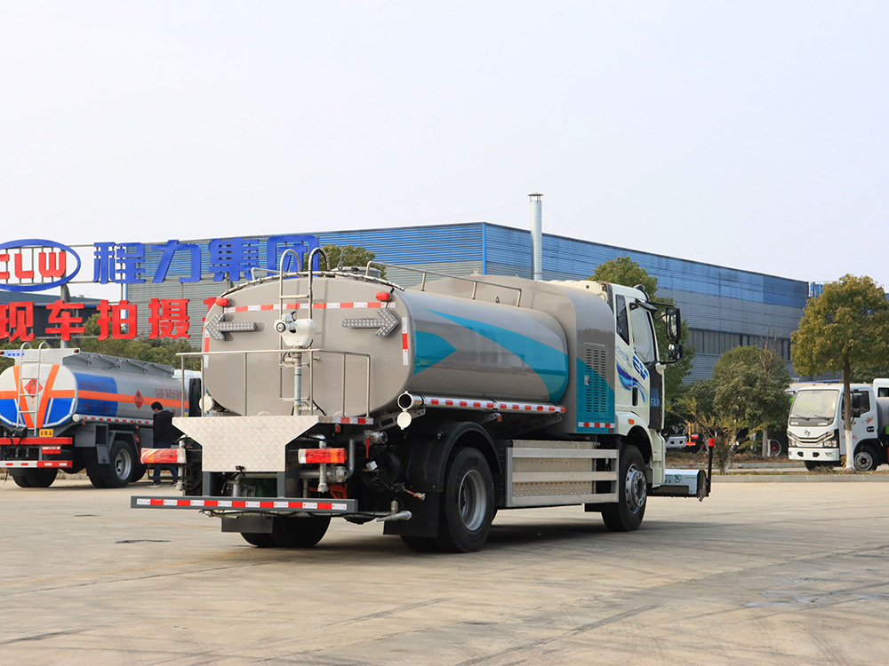 2. 前冲圆锥喷嘴,自动**,操作方便灵活冲洗路面宽度可覆盖6条车道;后洒圆柱喷嘴,喷出均匀的扇形水雾,宽度可到16m,能有效抑制路面灰尘;