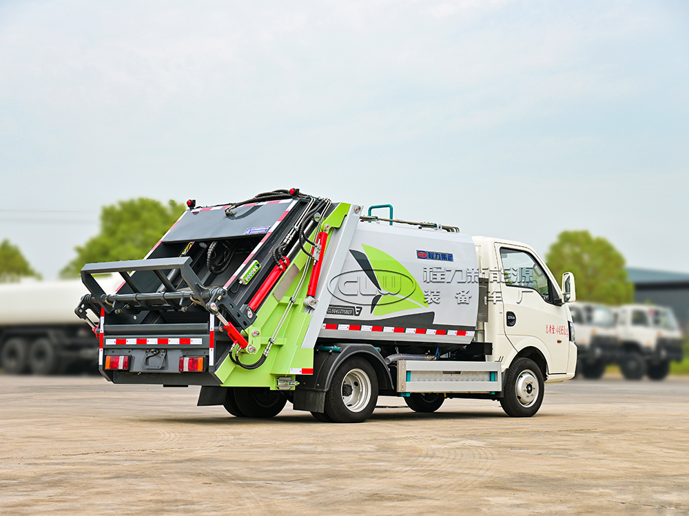 工作原理:整车为全密封型,自行压缩、自行倾倒、压缩过程中的污水全部进入污水箱,彻底的解决了 垃圾运输过程中的二次污染,具有压力大、密封性好、操作方便。安全等优点。